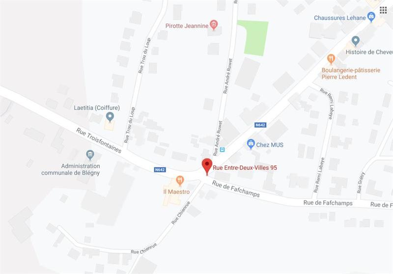 Autoroute E40, sortie 36 Blegny-Barchon, Traverser le village de Barchon, continuer vers Blegny. Le funérarium est le premier bâtiment de la rue principale du village de Blegny (rue Entre-deux-Villes). Le bâtiment est situé dans un virage à 90°. Un vaste parking est disponible à l'arrière du bâtiment (rue de Fafchamps). 2,5 km depuis la sortie d'autoroute.