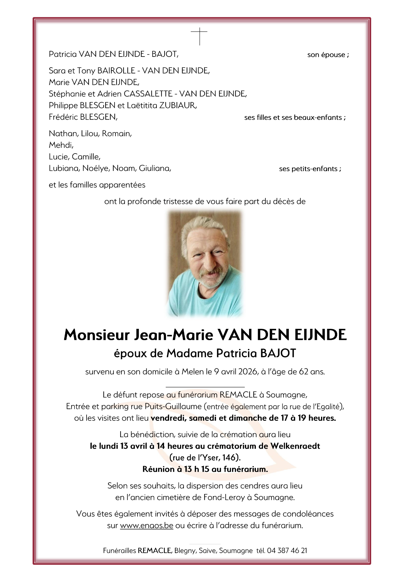 Avis de décès de Monsieur Jean-Marie VAN DEN EIJNDE