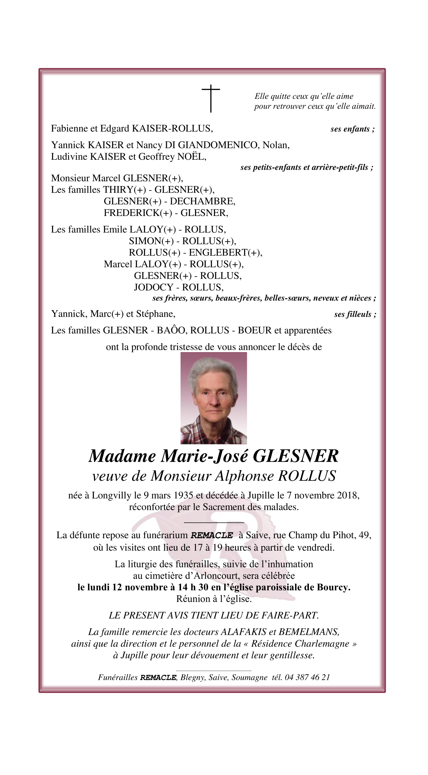 Décédée à Jupille-sur-Meuse (4020) le mercredi 7 novembre 2018 à l'âge de 83 ans
