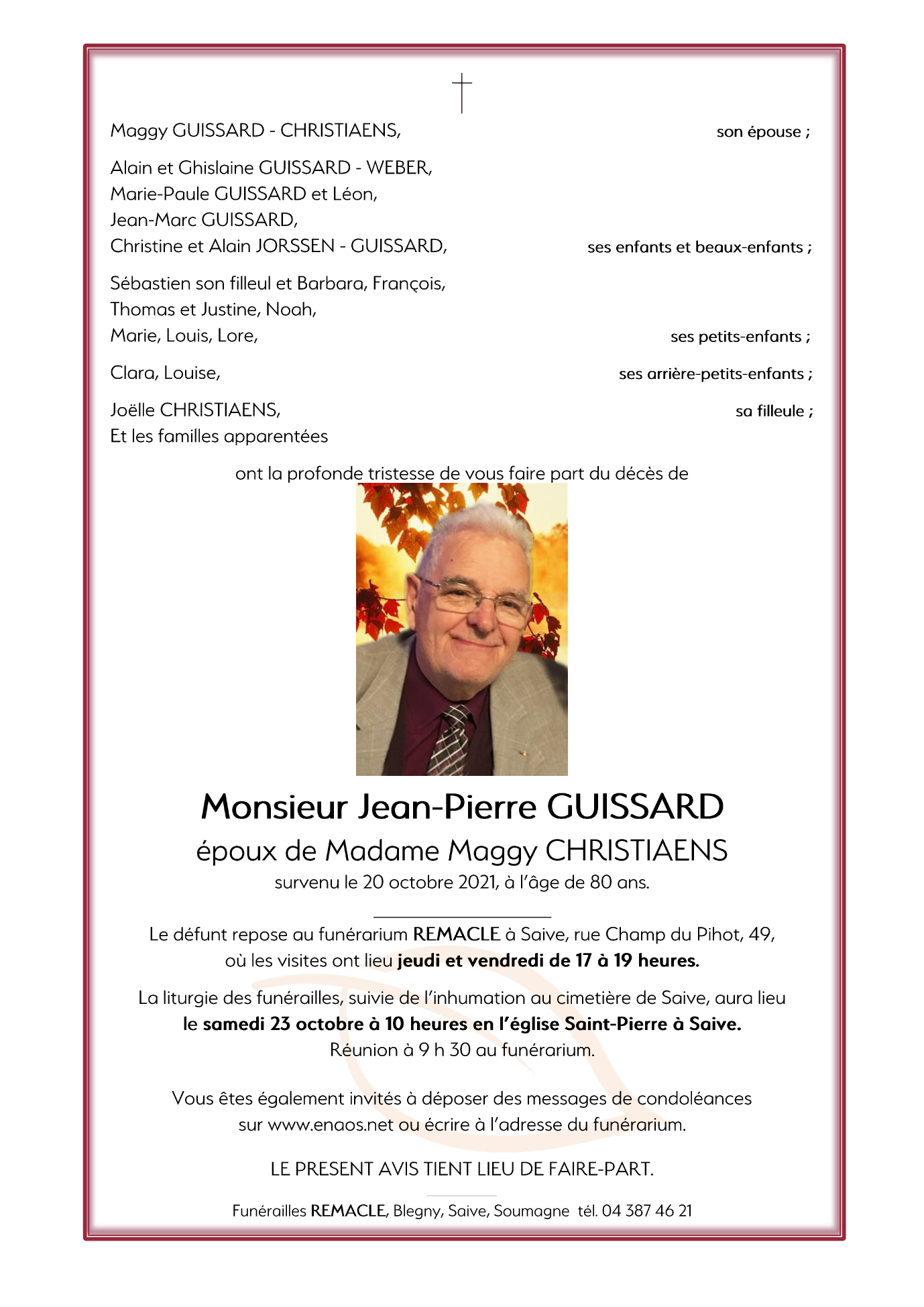 Décédé à Hermalle-sous-Argenteau (4681) le mercredi 20 octobre 2021 à l'âge de 80 ans