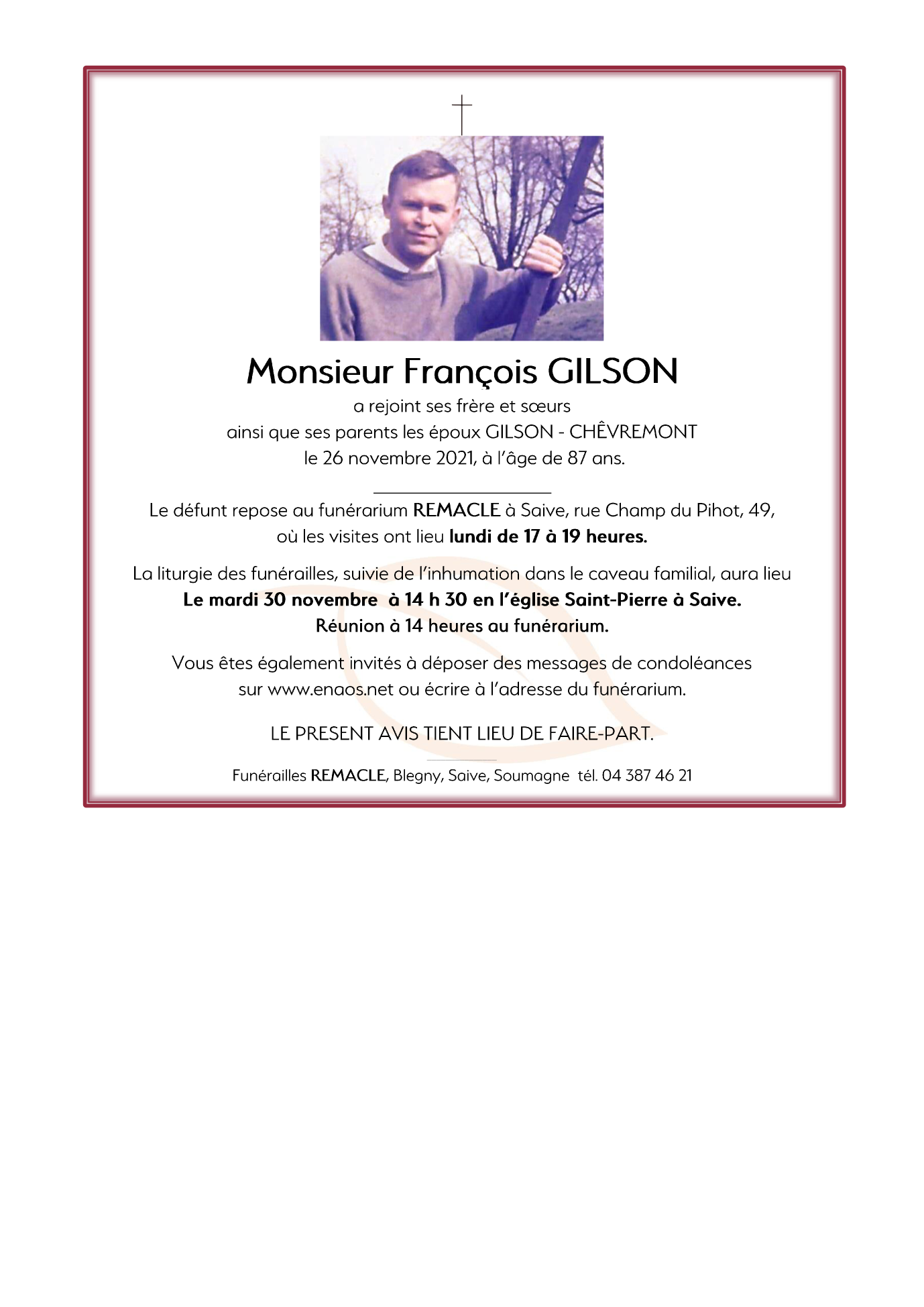 Décédé à Herstal (4040) le samedi 27 novembre 2021 à l'âge de 87 ans