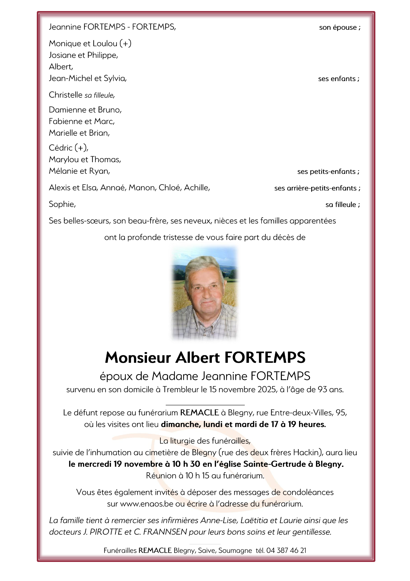 Décédé à Trembleur (4670) le samedi 15 novembre 2025 à l'âge de 93 ans