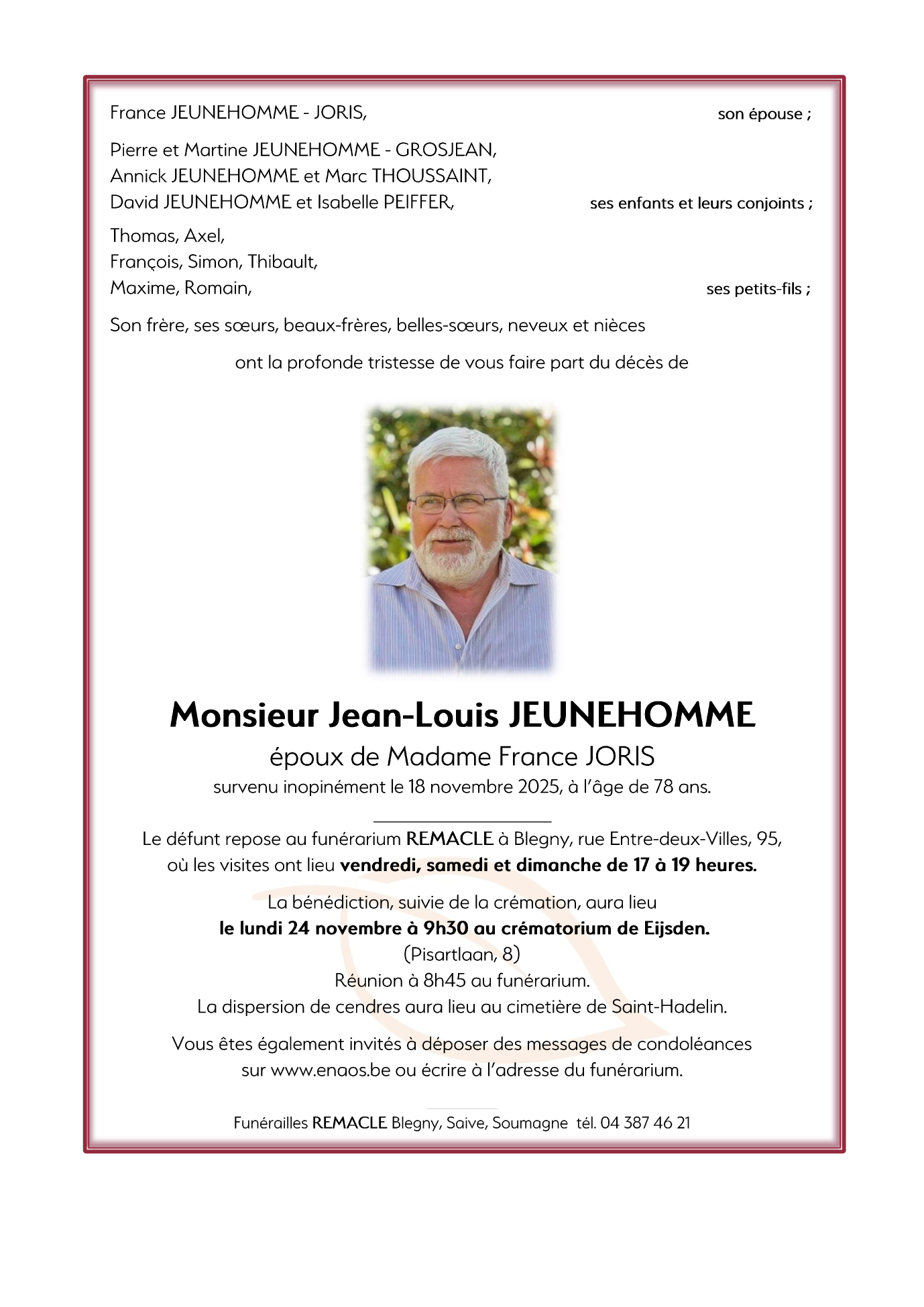 Décédé à Fléron (4620) le mardi 18 novembre 2025 à l'âge de 78 ans