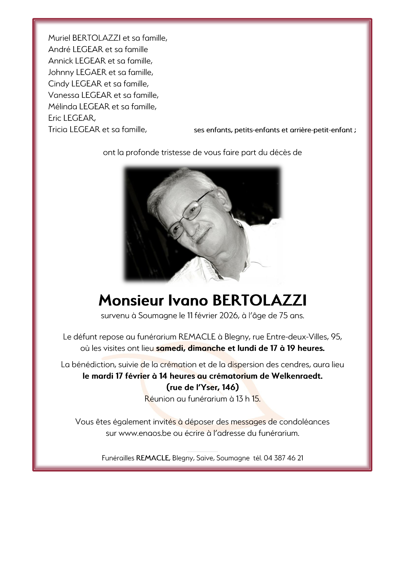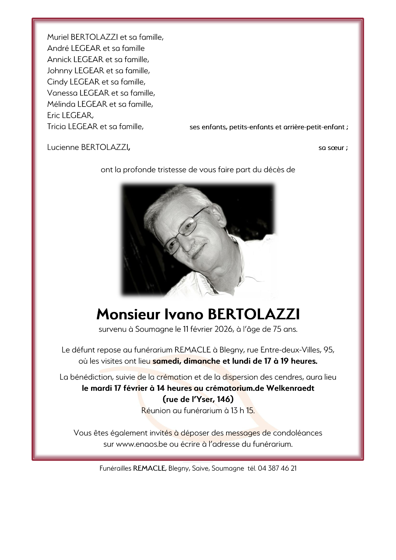 Décédé à Soumagne (4630) le mercredi 11 février 2026 à l'âge de 75 ans