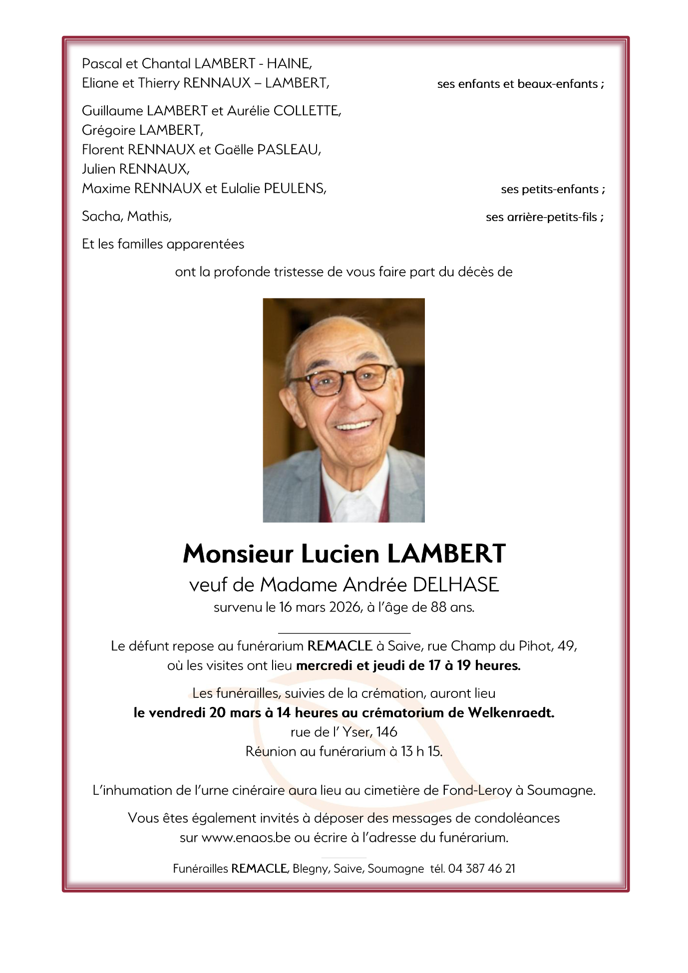 Décédé à Blegny (4670) le lundi 16 mars 2026 à l'âge de 88 ans