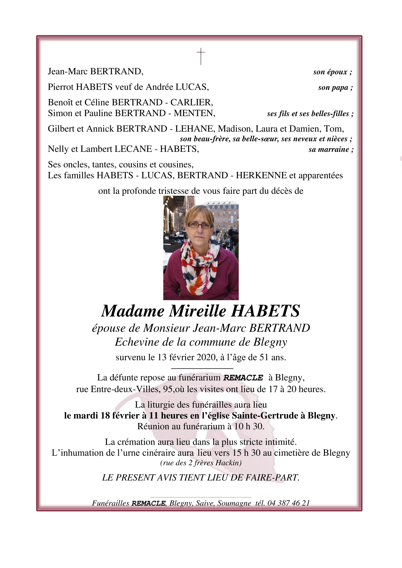 Décédée à Sart-Tilman (4031) le jeudi 13 février 2020 à l'âge de 51 ans