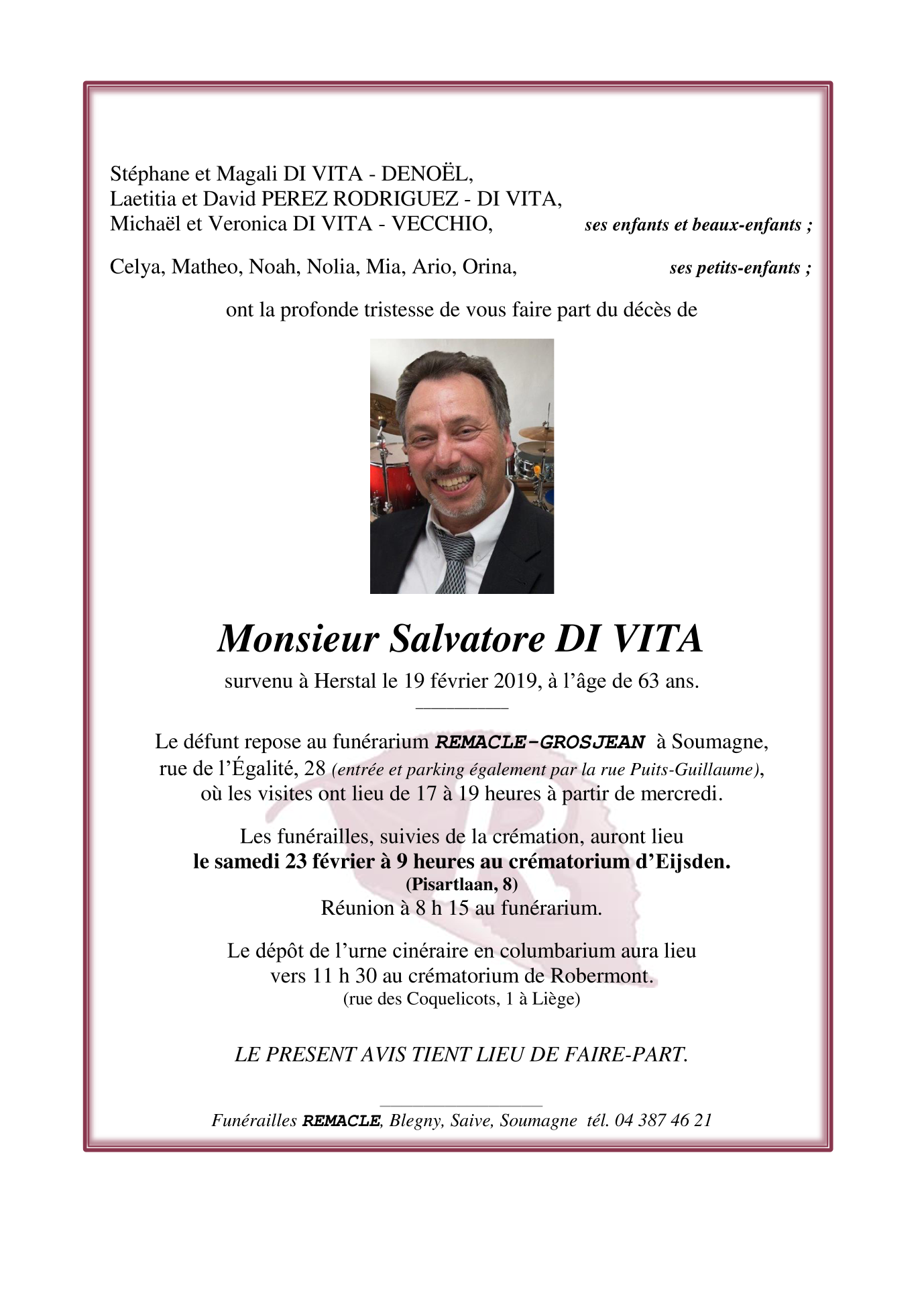 Décédé à Herstal (4040) le mardi 19 février 2019 à l'âge de 63 ans