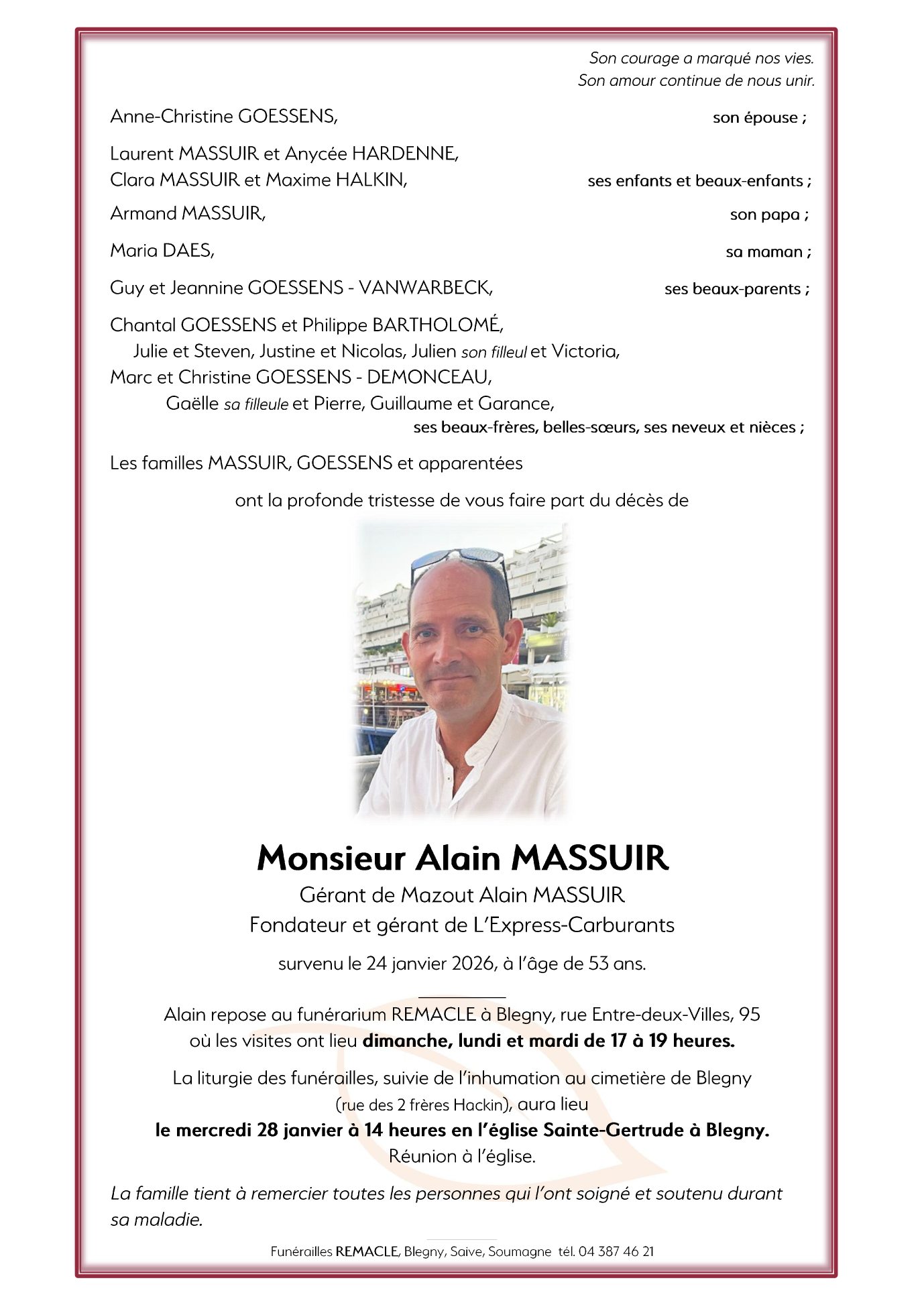 Décédé à Oupeye (4680) le samedi 24 janvier 2026 à l'âge de 53 ans