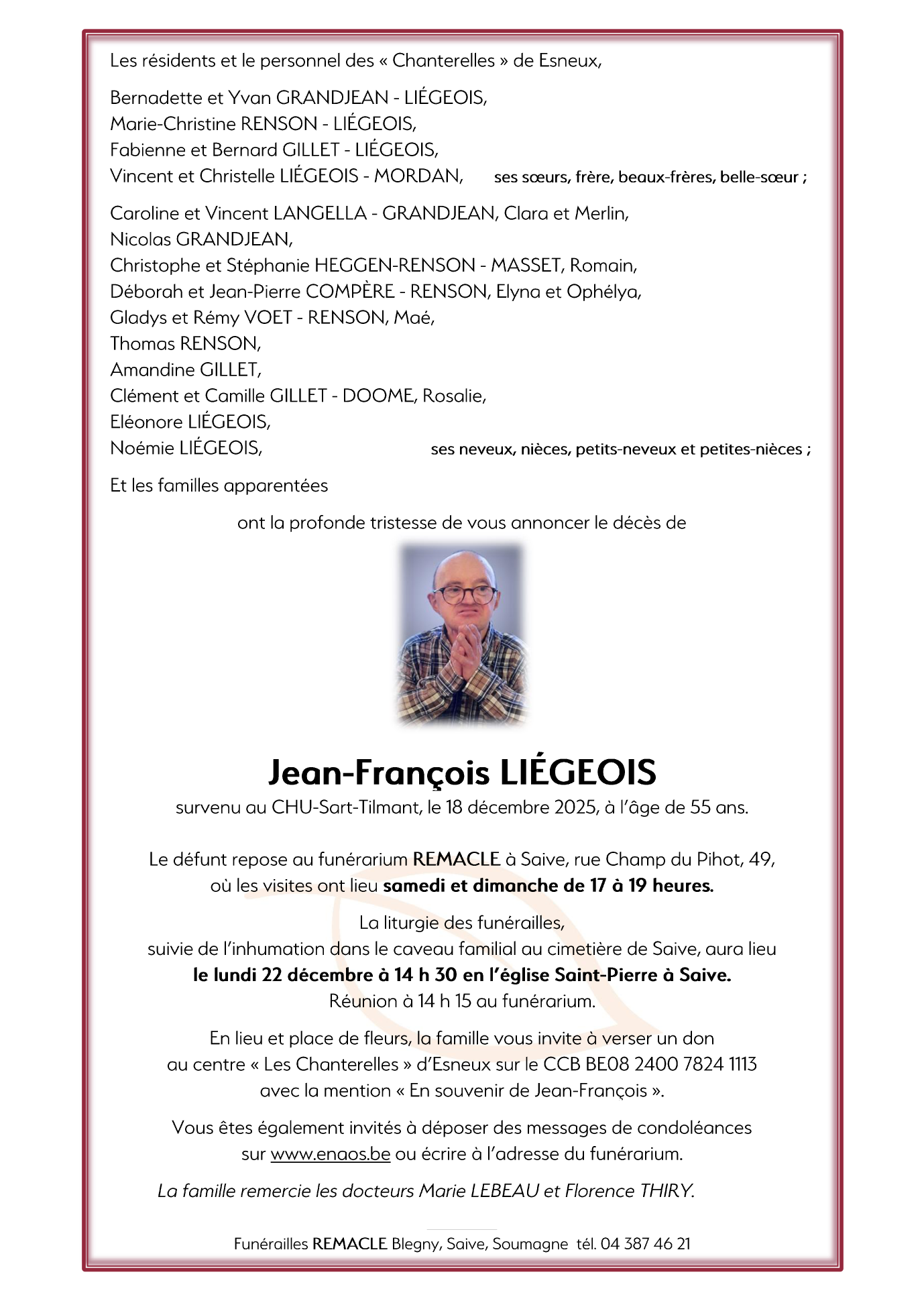 Décédé à Liège (4000) le jeudi 18 décembre 2025 à l'âge de 55 ans