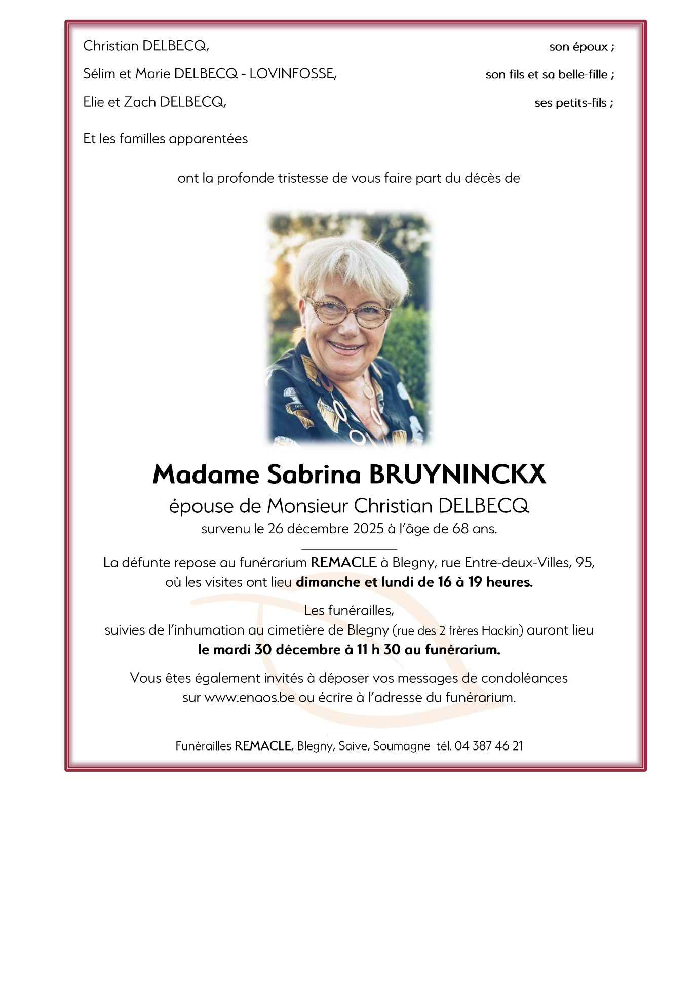 Epouse de Monsieur Christian DELBECQ