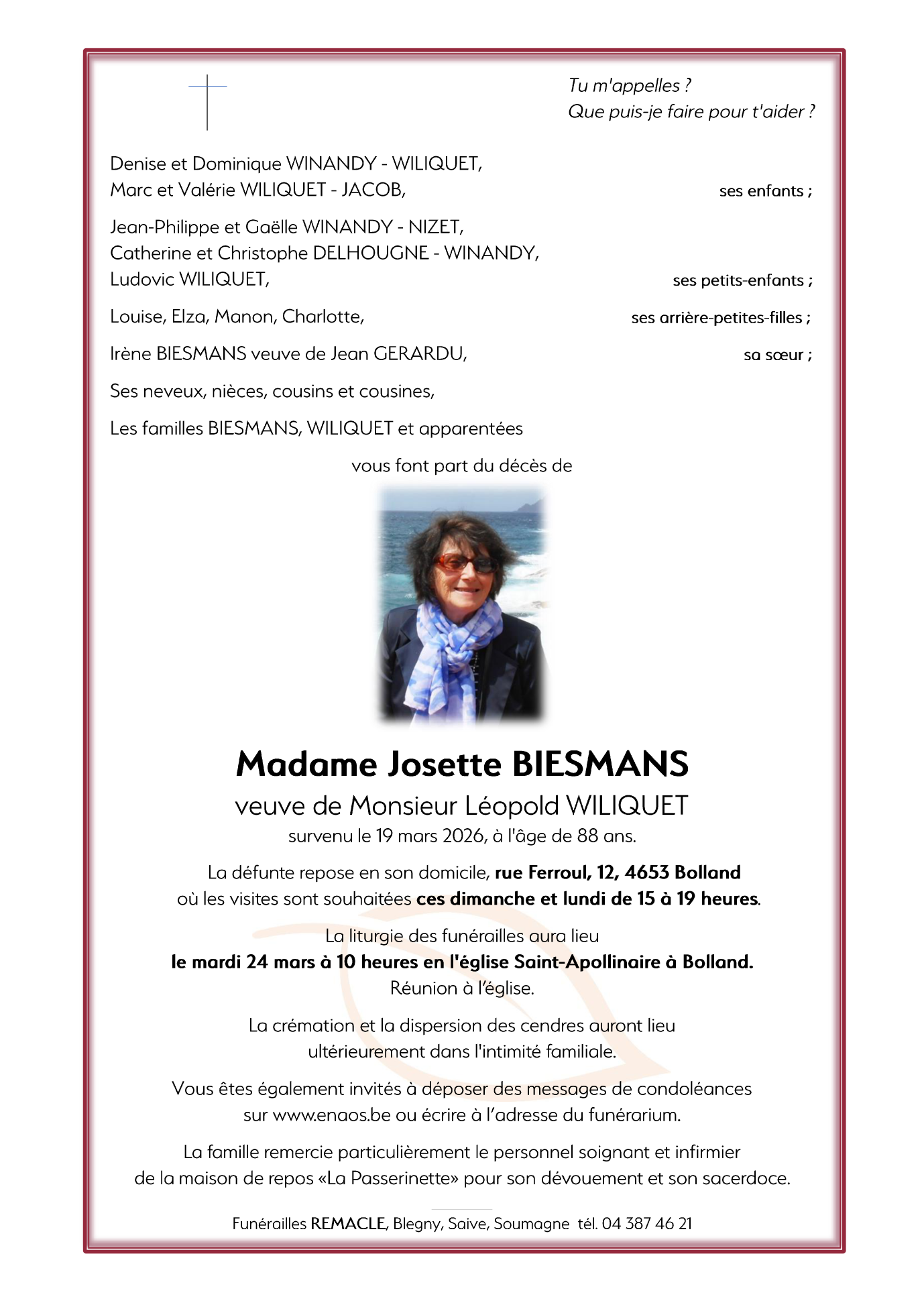 Madame Josette WILIQUET