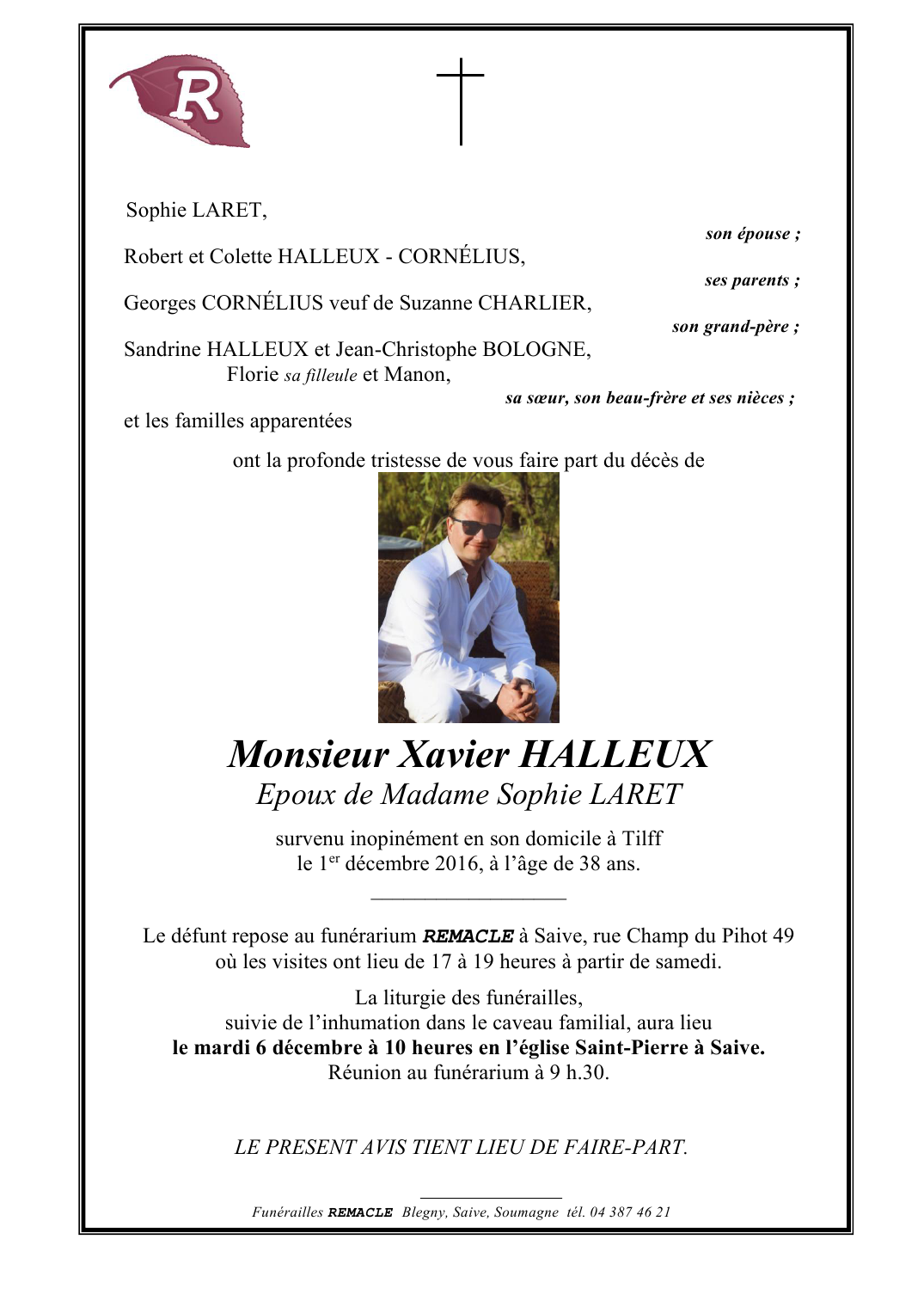 Décédé à Tilff (4130) le jeudi 1 décembre 2016 à l'âge de 38 ans