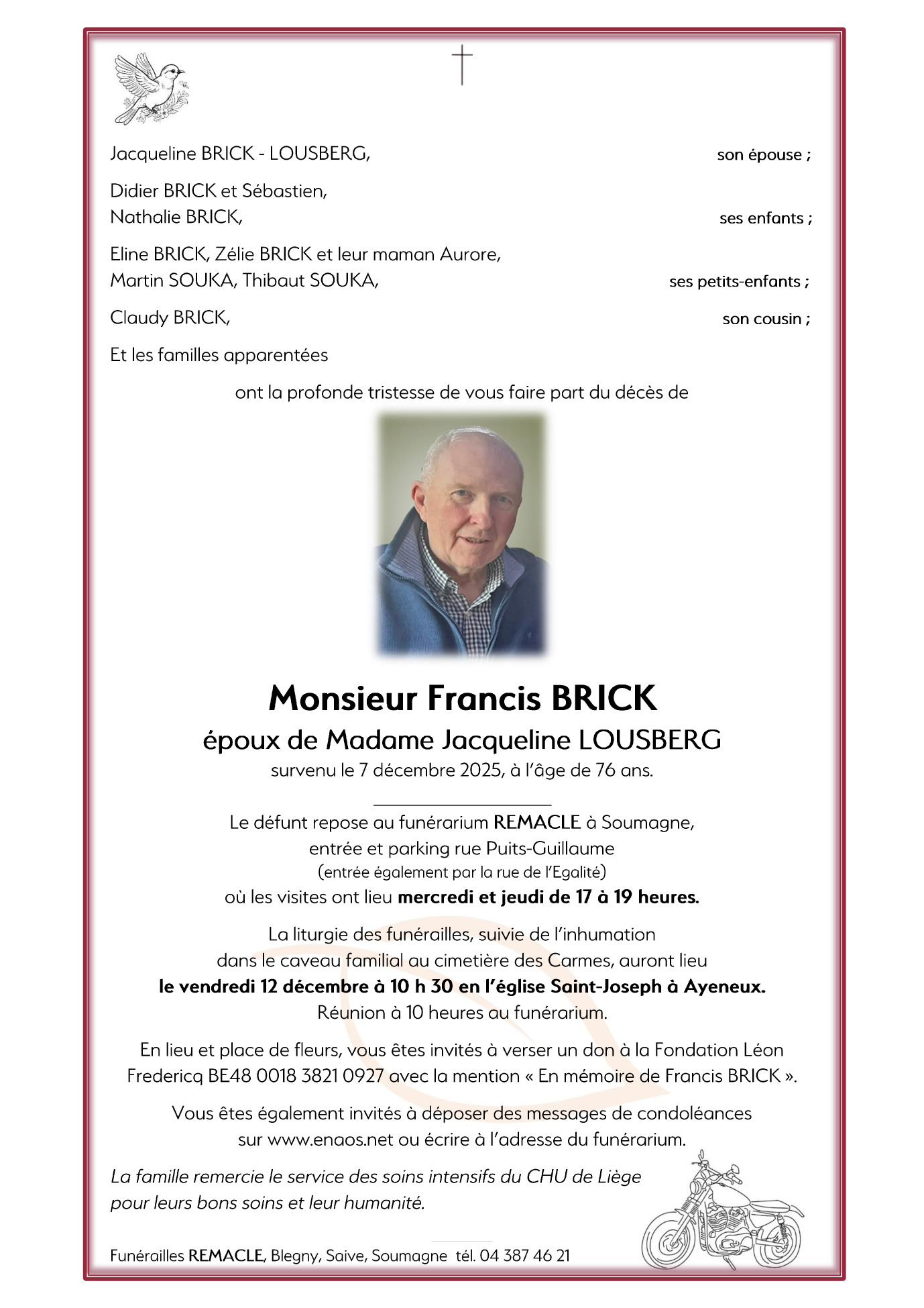 Décédé à Liège (4000) le dimanche 7 décembre 2025 à l'âge de 76 ans