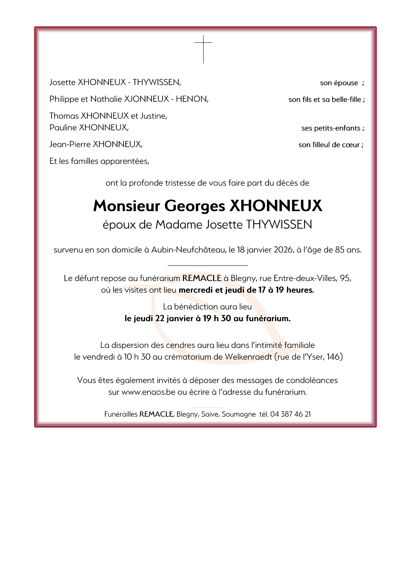 Décédé à Aubin-Neufchâteau (4608) le dimanche 18 janvier 2026 à l'âge de 85 ans