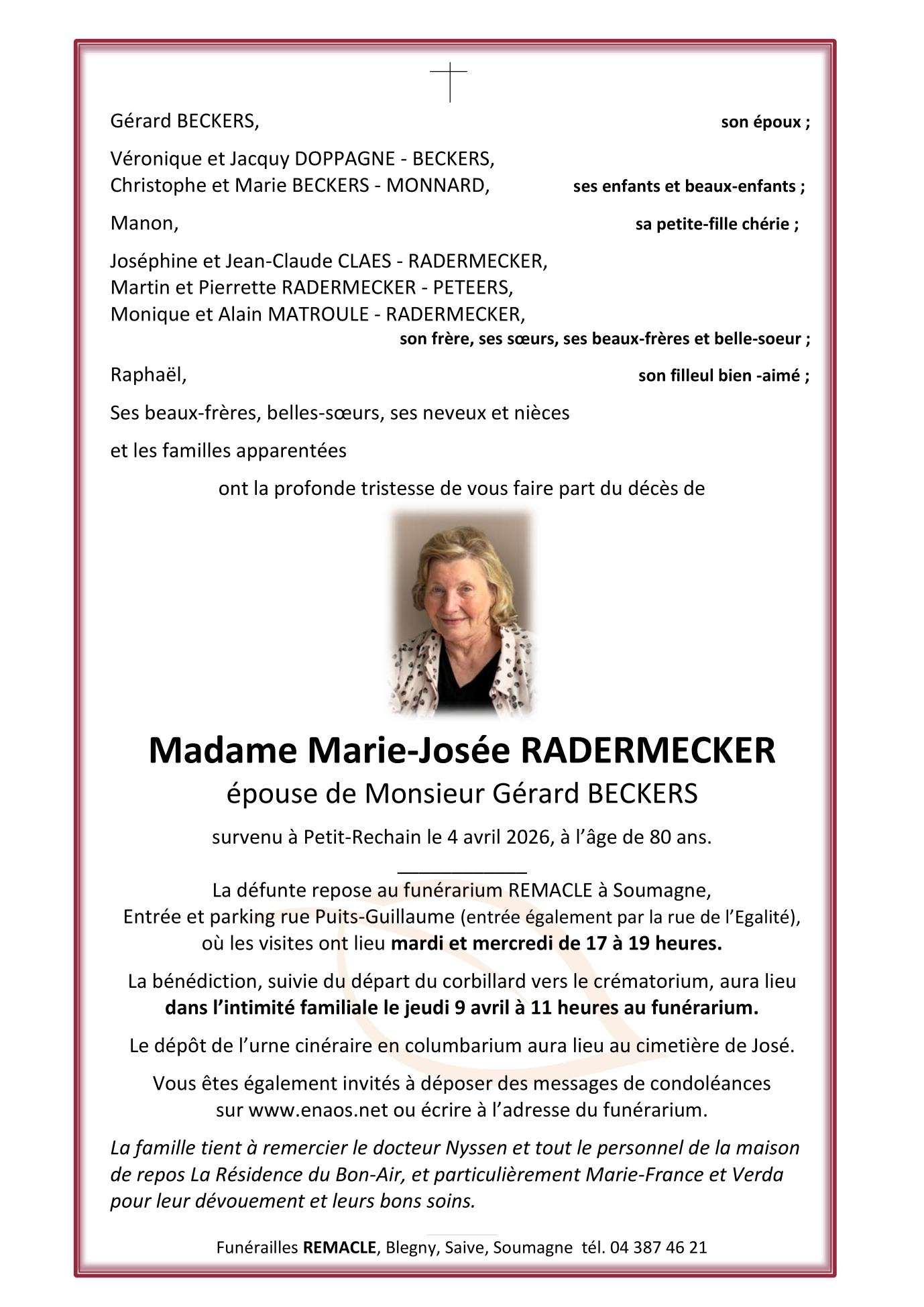 Epouse de Monsieur Gérard BECKERS