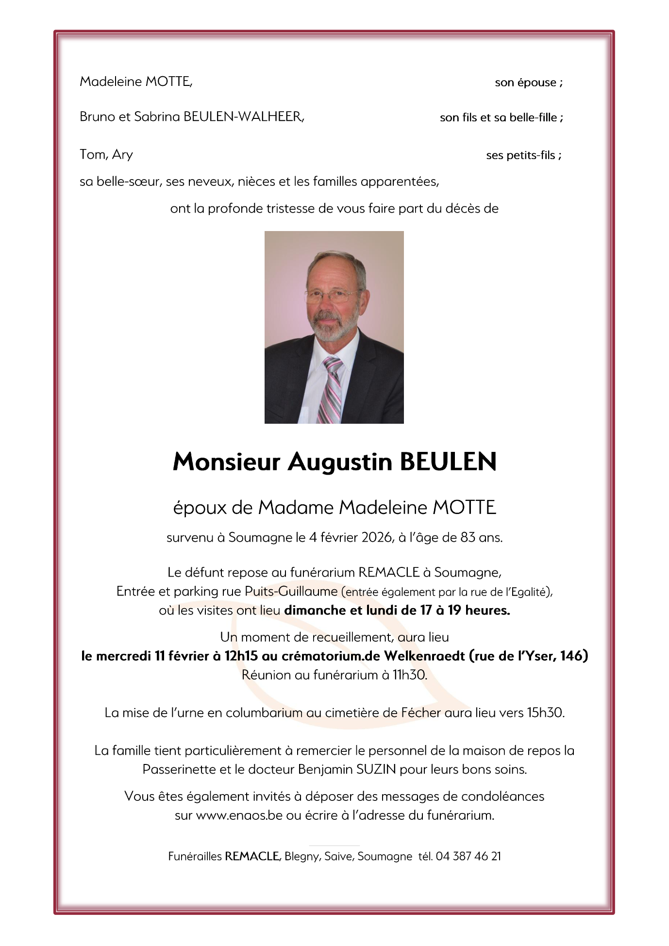 Décédé à Soumagne (4630) le mercredi 4 février 2026 à l'âge de 83 ans