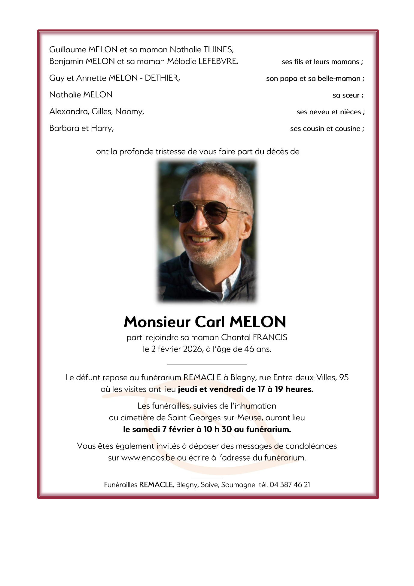 Décédé à Villers-le-Bouillet (4530) le mardi 3 février 2026 à l'âge de 46 ans