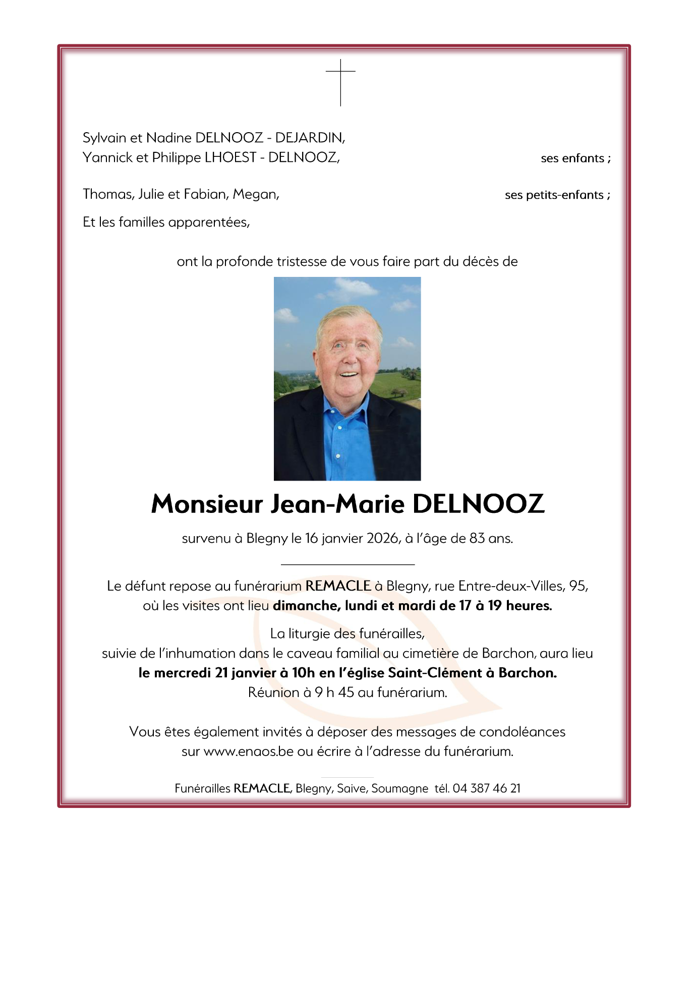 Décédé à Blegny (4670) le vendredi 16 janvier 2026 à l'âge de 83 ans