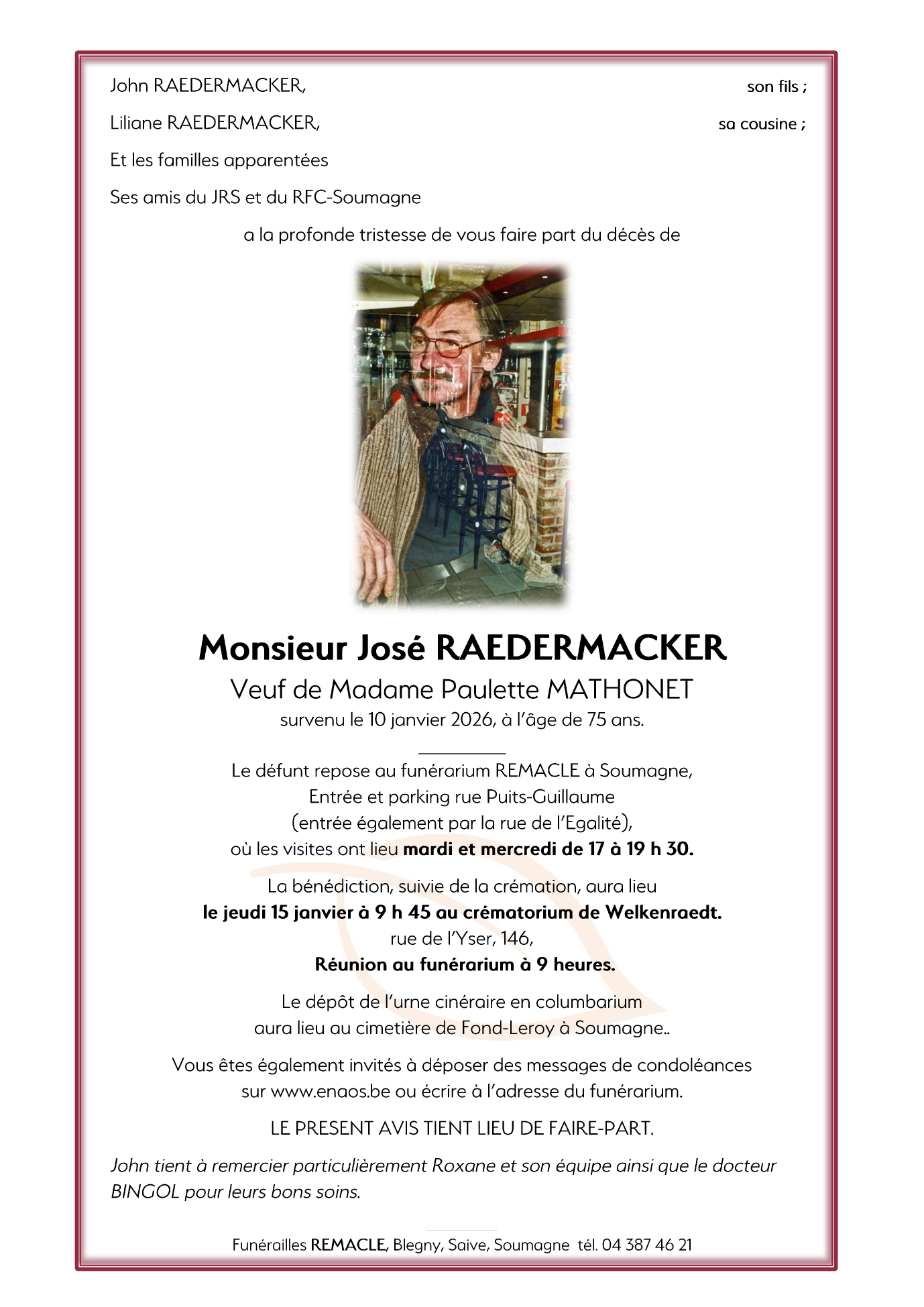 Monsieur José RAEDERMACKER