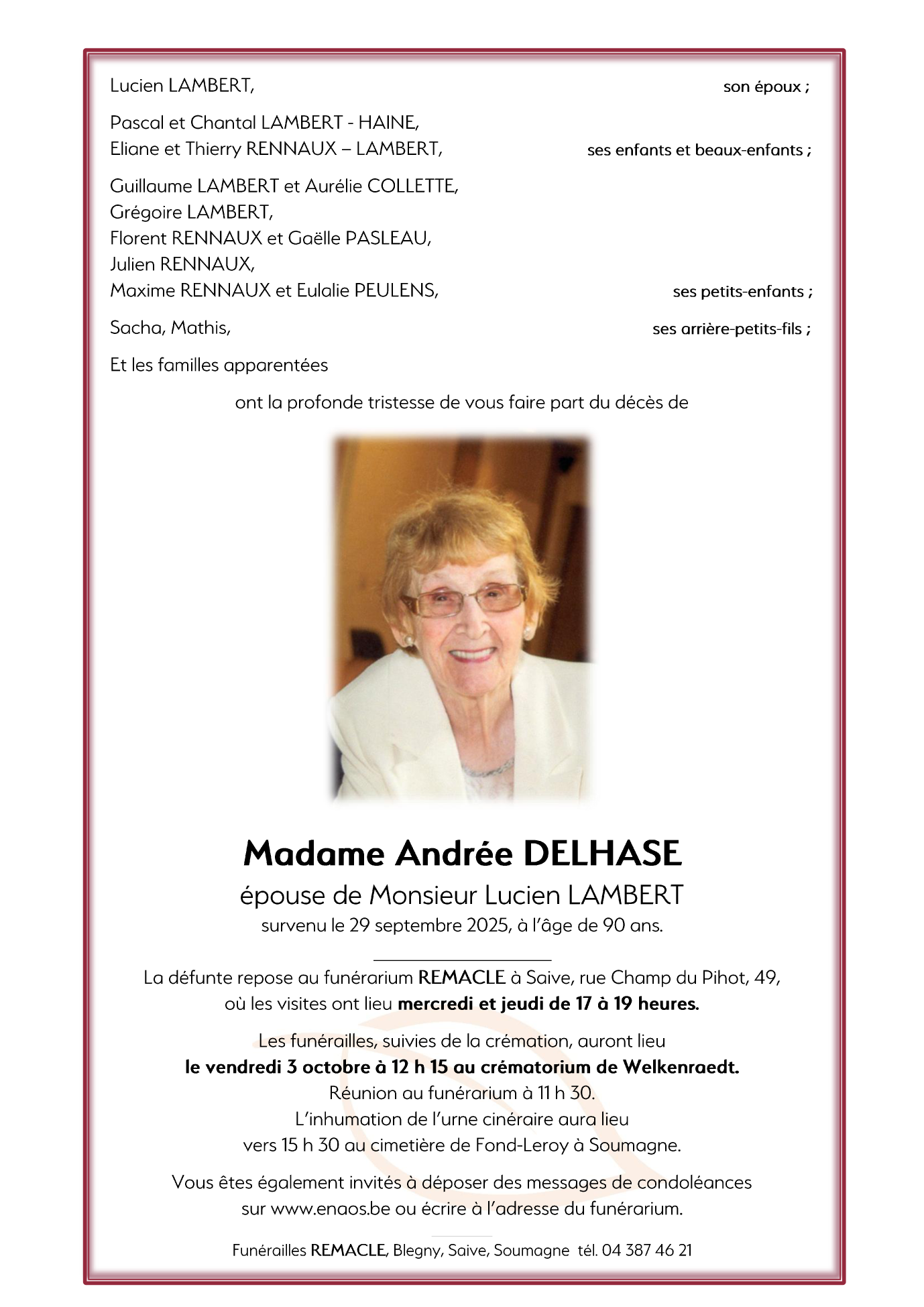 Décédée à Herstal (4040, Belgique) le lundi 29 septembre 2025 à l'âge de 90 ans